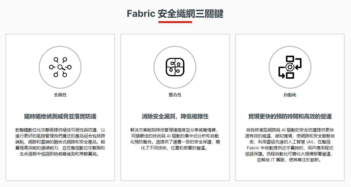 安全織網 Fortinet Security Fabric 安全織網為企業提供全面整合真正的自動化安全基礎架構,無論是虛擬環境、雲端環境還是從事內部部署,為每個網路區段、設備、設備與設備間提供無與倫比的保護和可視性。